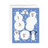 Carte de souhaits avec un heureux bonhomme de neige, vierge à l'intérieur, accompagnée de son enveloppe.